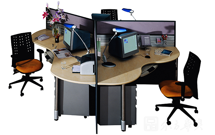 ※ 屏风90度和180度连接,整合四人位背对背型,简单,便于沟通和洽谈!