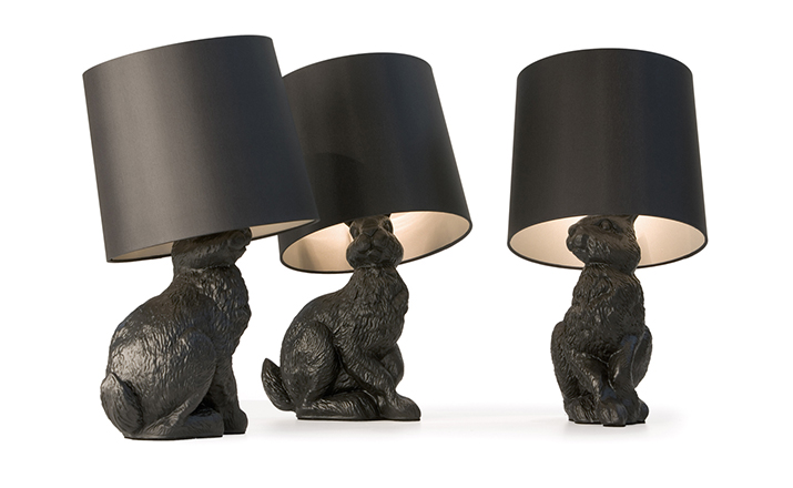 "The Rabbit Lamp has been designed by the Design Team Front Design for the Netherlands manufacturer Moooi. The table lamp is part of the three-part collection of furniture and lamps that include the real-size Horse Lamp and the Pig Table besides the Rabbit Lamp.The rabbit-body consists of fibre glass. The lamp’s shade is made out of a PVC/viscose-material that has been tensed on a metal frame and closed to its top."