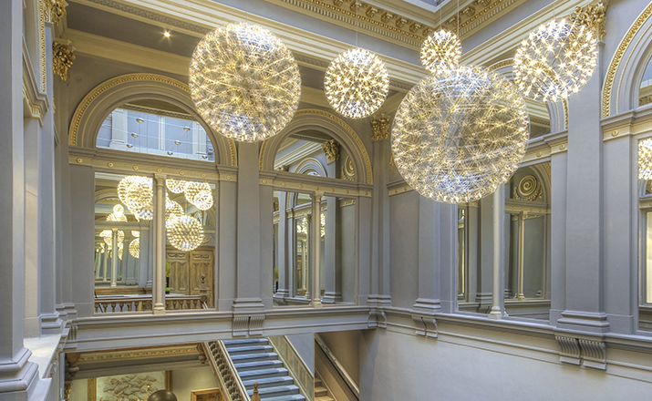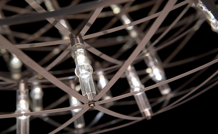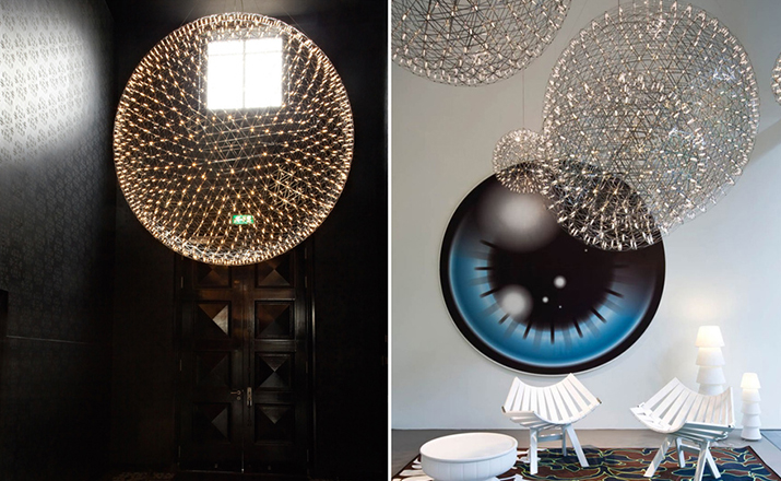 "The beauty of light was redefined with the Raimond pendant lamp basing on pure mathematics. Finally it is possible to watch the universe and enjoy the starlight while the night sky is cloudy. The Raimond pendant lamp enables this with its numerous LED’s that seem to float in space like real stars.Raimond consists of complex stainless steel grid nettings. The single trams from the netting are (similar to the planet orbits) arranged around an imaginary point.The Raimond Pendant Lamp is also available in different sizes and each one of them in a dimmable and non-dimmable edition."