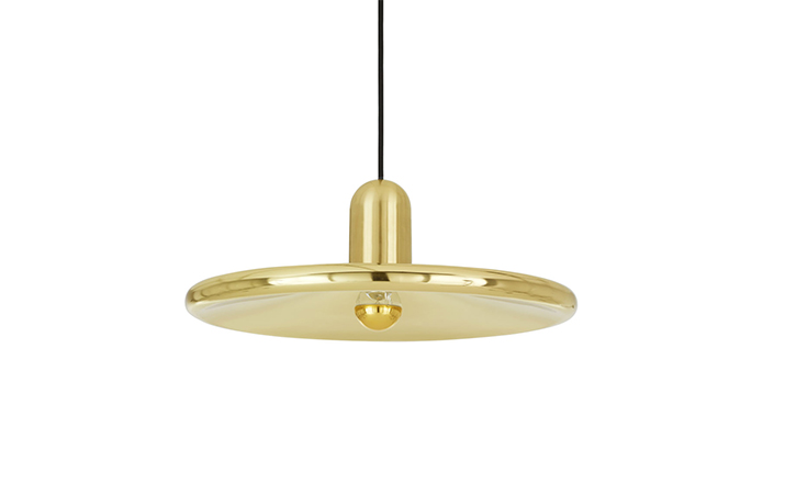 The Tom Dixon Spun Pendant Lamp is an unexpectedly simple brass disc with a fat tubular edge is recast as a minimal pendant lampshade that hints at a Space Age, Deco or Pop Art aesthetic.Acting as a golden reflector for the crown lightbulb, the Tom Dixon Spun Pendant Lamp casts an ambient glow and can be hung in multiples or as a single pendant.