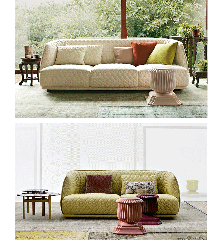 Redondo is an elegant seating collection which includes two sizes of armchairs and sofas as well as various customizable elements.The armchair and small armchair feature injected flame-retardant foam over an internal steel frame with polypropylene glides in your choice of upholstery.All covers are quilted in a design by Patricia Urquiola as an integral aesthetic of this collection.The Redondo seat cushions are polyurethane foam & polyester fiberfill.Optional back cushions are goose down and offered online in one size but available in a variety of sizes(please call to specify).Covers are removable.