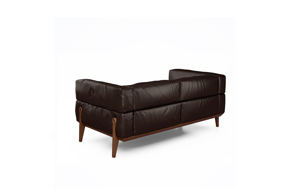 扶手椅和沙发在异形钢底架画上黑色的颜色,覆盖着坚实的核桃卡纳莱托木(fin.11)和杨树胶合板的扶手。 脚和侧翼在固体核桃卡纳莱托木(fin.11)或在液态金属青铜或钛版本。