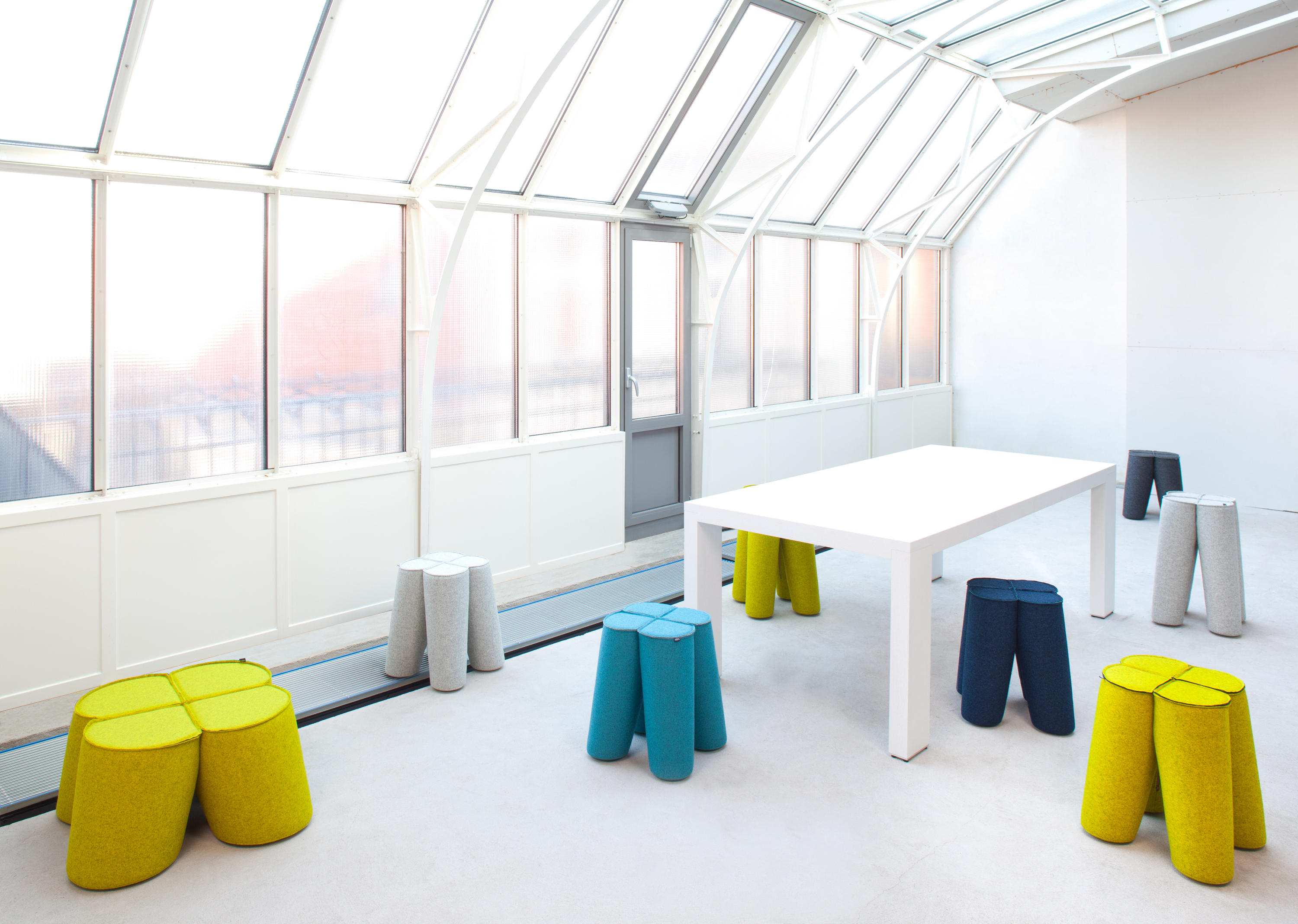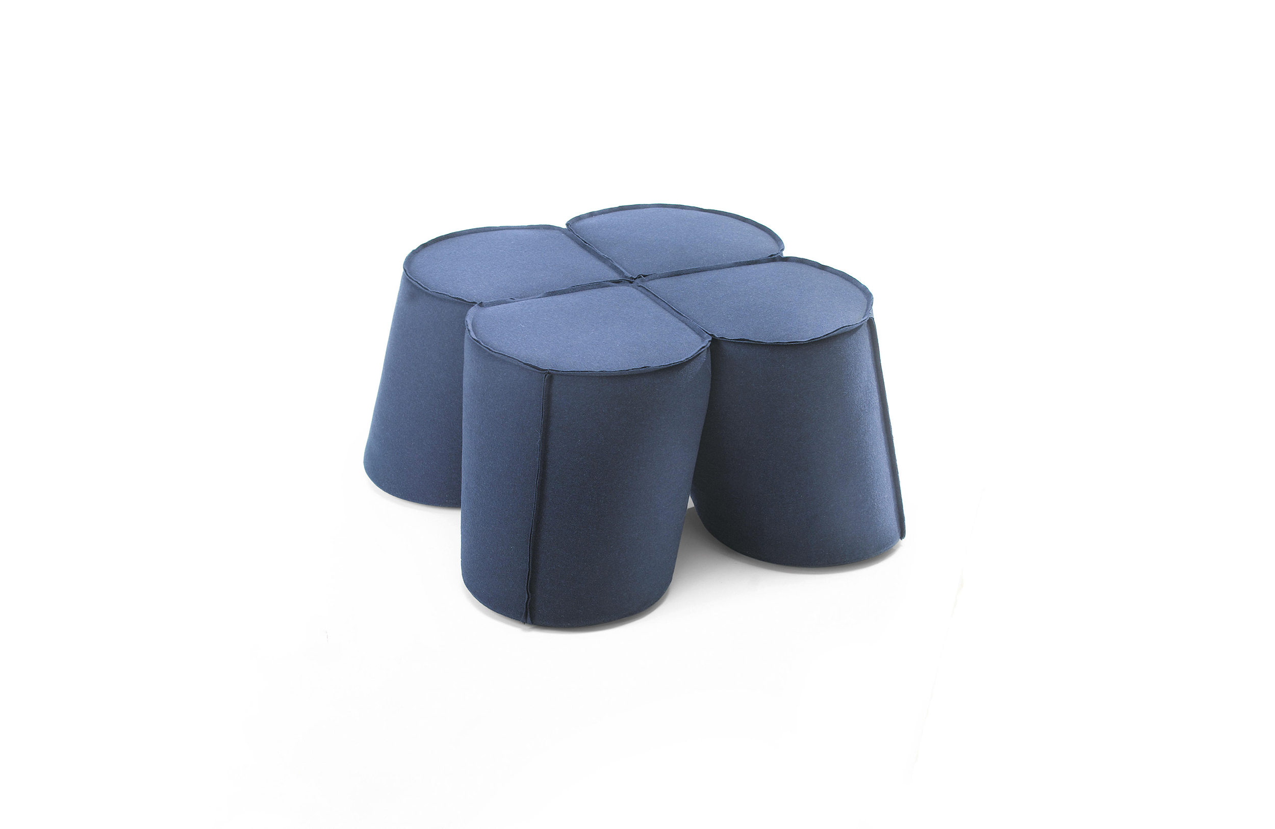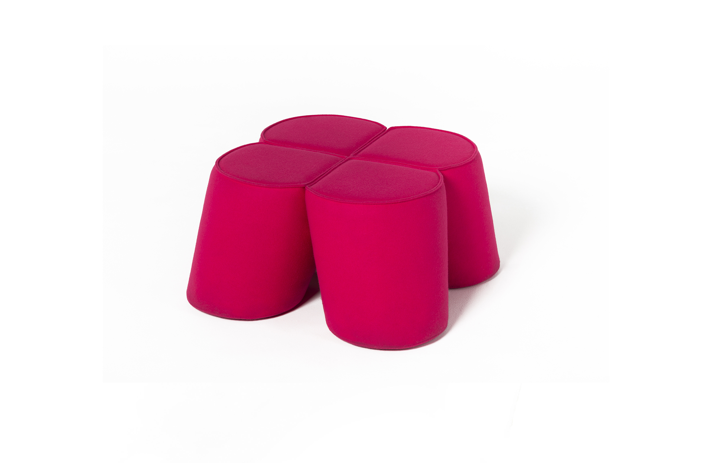 三叶草是对受欢迎的凳子的独特诠释。它的特点和奇特的形状让人想起四叶苜蓿……给人带来好运。该系列包括三种不同尺寸的座椅:袋、凳和杆凳。此外,当你在上面放一个单独的桌面时,凳子可以用作桌子。有不同的缝制成品可供选择:标准缝、右缝和右缝,外加任何颜色的附加镶嵌。