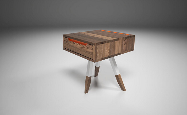 "port end table(端口桌几)可以适用于任何房间,它虽小但功能强大,简洁却又不失美观,造型新颖,别具一格。制作采用精选MDF板基材、进口美洲胡桃木皮贴面、实木脚架、彩色装饰边、环保净味油漆喷涂、做工精湛。"