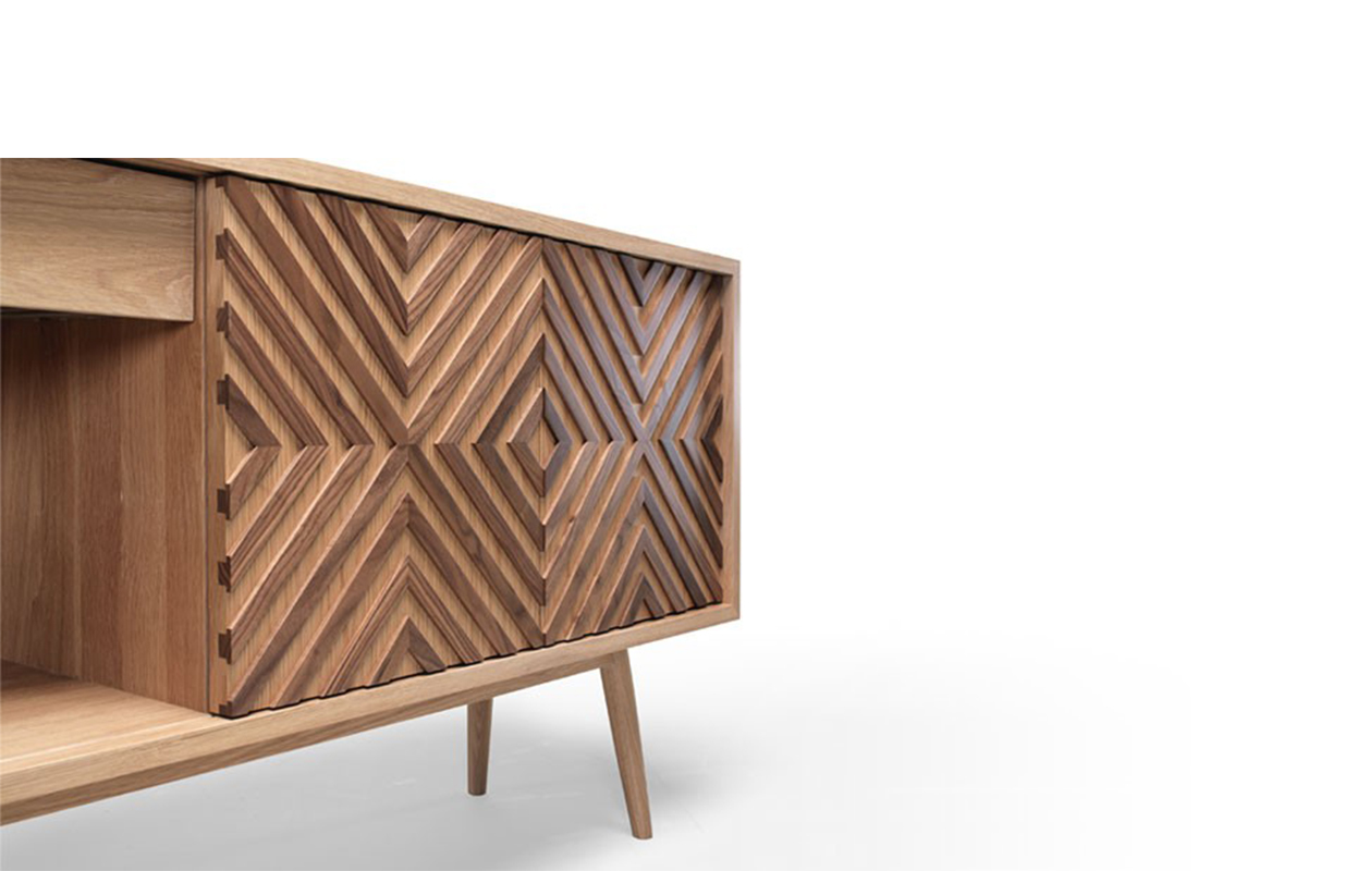 Casanova餐具柜:卡萨诺瓦是一块实木在100%,这可以是一个电视柜或简单地作为一个餐具柜。 门上的图案复制是由块橡木,胡桃木是固定的,熟练的工匠工作结合高质量的材料。 卡萨诺瓦是由五个空间:两个橱柜与滑动门,两个抽屉和一个开放的空间,两个可调节的架子,提供一个最佳的存储空间.