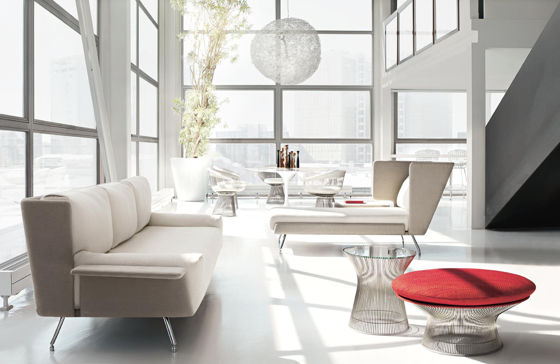 在1960年代,沃伦Platner钢丝变成了雕塑家具收集、创建现在被认为是现代的设计图标。 Platner收集独特的和谐的形式是由焊接钢线材圆形镜框,生产波纹效应和捕捉装饰、温柔、优雅的品质Platner试图实现。 手的安乐椅上,一个流行的雕塑图标削几何形状和颜色,是弯曲的舒适的缩影;它可以有或没有脚踏,也可以单独使用。