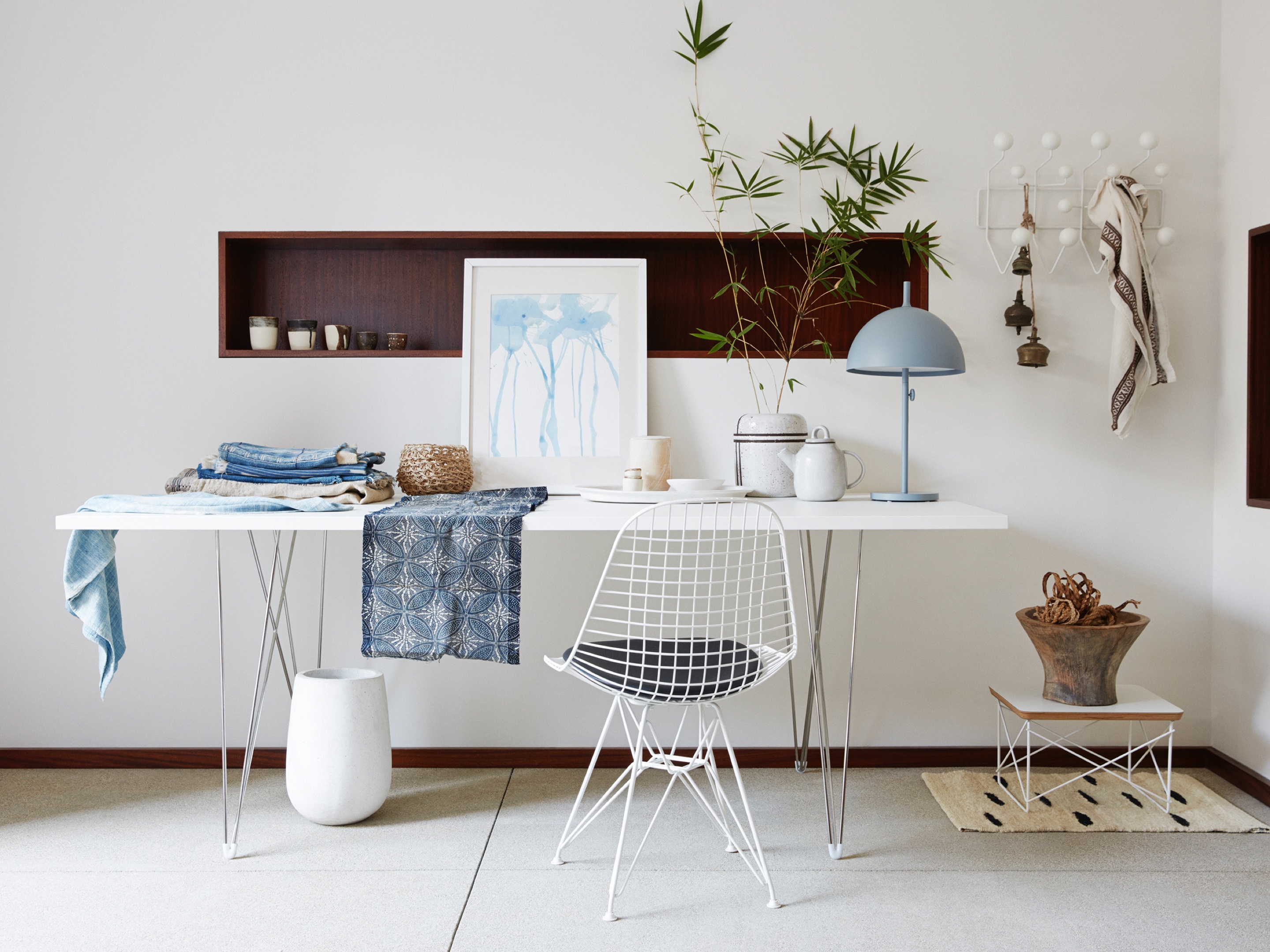 Charles & Ray Eames 1951 年發表的 Wire Chair 系列,以一片式有機網狀椅座,延伸變化出一系列不同椅腳及座墊搭配的單椅,這系列椅款輕巧透明的設計,在 60 年代可說是運用了當時最先進的技術來製作,靈感則是來自於鏤空的金屬收納籃,金屬條交織的椅座,彎曲的弧面不僅符合人體工學,在視覺上更具有穿透性。