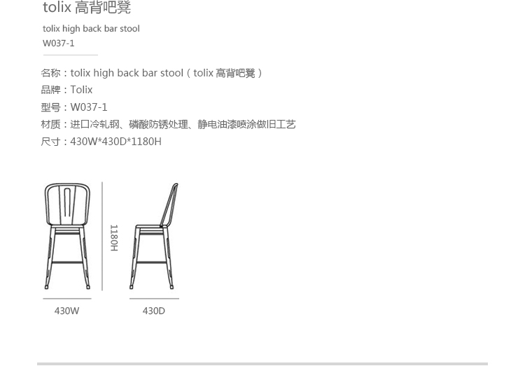 乐竞平台 - 坐具|吧椅/凳子|办公家具|设计师家具|tolix高背吧凳