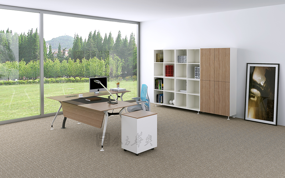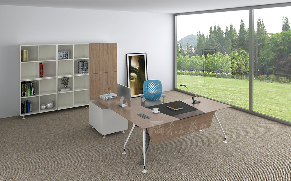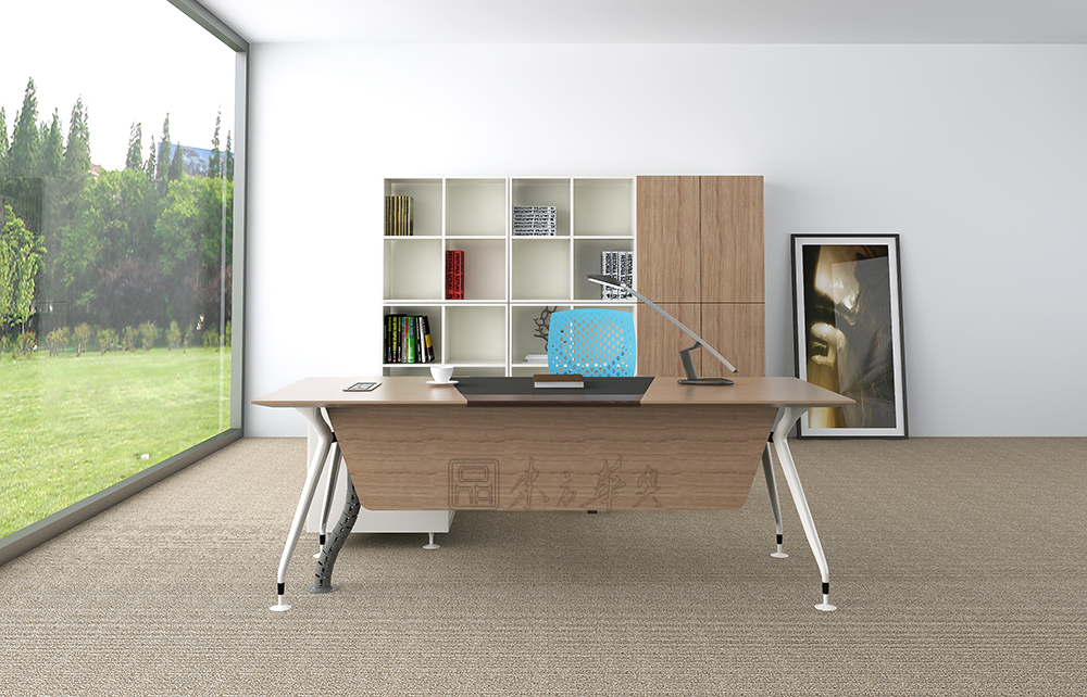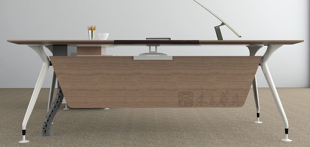 ※ 下图为配套大班台展示,台面颜色可选,木析纹理和质感表现得更为淋漓尽致,色泽自然,台脚可选择,不锈钢脚或钢脚架喷涂,款式简洁大方,时尚美观。