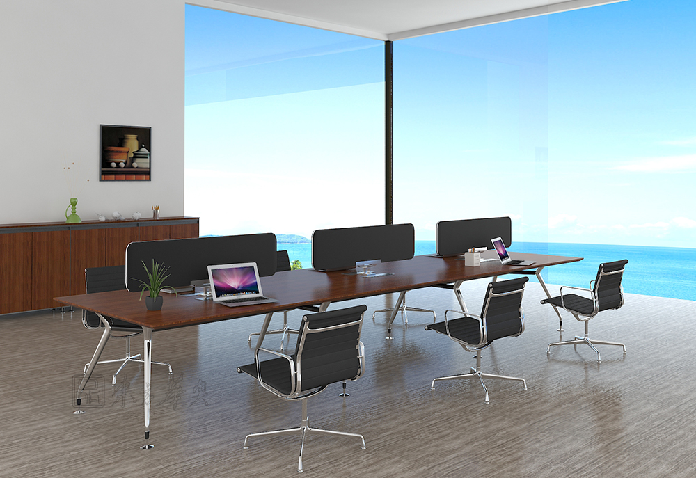 ※ 下图为配套会议台展示,台面颜色可选择,木析纹理和质感表现得更为淋漓尽致,色泽自然,台脚可选择,不锈钢脚或钢脚架喷涂,款式简洁大方,时尚美观。