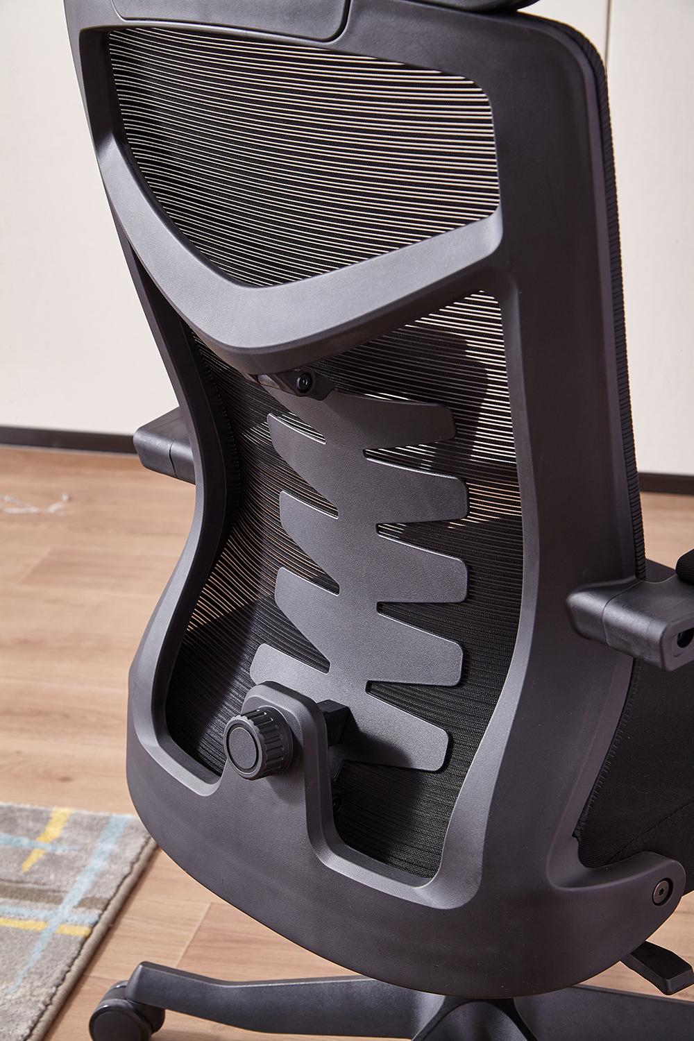 头枕:头枕靠背坐垫采用优质网布,升级大贴面软包头枕,柔软舒适 背框:黑色PA尼龙+玻璃纤维注塑配件,功能鱼骨腰枕,可前后调节灵动支撑,外拉式300N线控气动躺度功能,靠背可任意角度调节,最大可躺170° 坐垫:45#密度原生高弹力切割海绵坐垫,扪高弹力透气网布,安装隐藏式伸缩脚踏 扶手:自适应联动扶手,扶手面扪透气网布,手臂坐躺皆可支撑 气杆:优质黑色三级气压棒 椅脚:高强度345#尼龙脚,注塑一次成型五星脚 轮子:60黑色PU脚轮