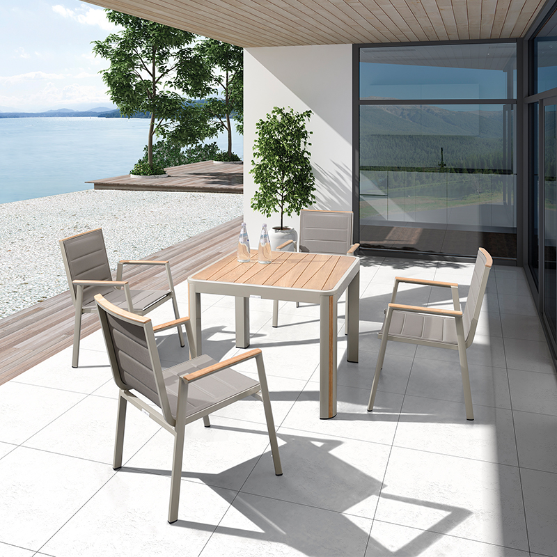 设计灵感:1970年AMC V8 肌肉车,经典中的经典 “经典”---设计灵感是经典中的经典,整体铝镁硅合金外框像极了肌肉车的构造,充满力量; “完美”---横向的热熔缝制处理和竖向的精密线条做点缀,完美结合 “高级”---外框架表面喷涂高级香槟色AkzoNobel牌粉末,坐背体采用双层夹棉原理,令产品立体有充满动感 “多元”---系列产品配套齐全,沙发、餐桌椅、转椅、躺床、高吧餐桌椅、飘床等,满足您的不同生活需求 瑞士手表有极高精准度,而日内瓦系列由此得名。人们一提到户外家具,往往联想到更多的是藤艺的或者是铸铝的款式,如今随着现代设计潮流的繁荣,金属外露的设计也变得愈来愈紧俏。 日内瓦系列的每个产品细节,就像手表一样,都做到了极致,令人无可挑剔。纯天然柚木扶手和桌面,触感真切,随时随地感受大自然。不规则的木板排版,让人耳目一新,记忆犹深。坐背体采用双层夹棉原理,热熔的缝制处理令产品立体又充满动感。 日内瓦系列选用高级香槟色粉末喷制金属主体,灰褐色特斯林面料制作软体结构,当香槟味遇上Taupe色,仿佛陷入纯情,一幕幕经典的爱情故事再次映入眼睑。 日内瓦系列配套有沙发、多人位餐台餐椅、高吧台和吧椅、组合沙发、旋转休闲椅、沙滩躺床及飘床,应有尽有,满足您不同的生活需求。